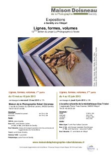 Ainsi croisées, les formations s’enrichissent et se complètent, et peuvent ouvrir des perspectives aux enfants qui peuvent se trouver en échec dans l’une d’elles. La Photographie à l’Ecole reste doncune expérience complexe qui, au-delà de la production d’images, renferme de véritables enjeux pédagogiques. Le thème proposé cette année, Lignes, formes, volumes, a permis aux enfants de porter un regard nouveau sur le décor de la vie quotidienne et à en extraire de remarquables images qui ne manqueront pas de vous surprendre et de vous séduire en parcourant l'exposition.